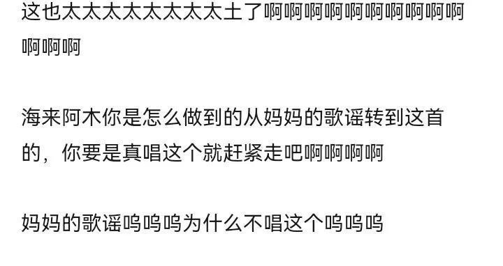 本人海来阿木就也曾被群众诟病太“土”,不知谈选这首歌曲是否是为了恢复这种“吐槽”。