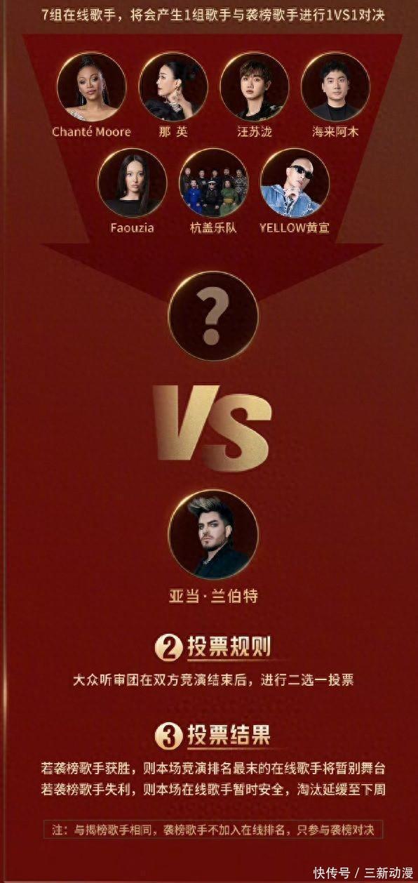而如果亚当收效,那么本场名次临了的歌手将会平直淘汰。